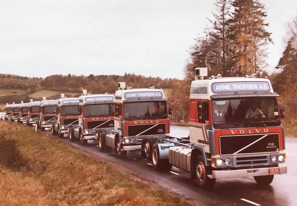 Bildet er fra 1986 og selger fra Volvo, Hans Inge Haukenes (nr to fra venstre og en fra Volvo i Gøteborg er også med på bildet."